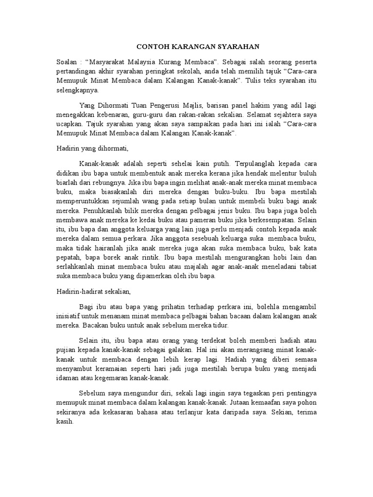 Karangan Syarahan Contoh 1 Kamu akan menyertai pertandingan syarahan yang dianjurkan oleh Persatuan Bahasa Malaysia sekolah kamu. 100 karangan contoh pmr dan spm karangan bahasa melayu bahasa.